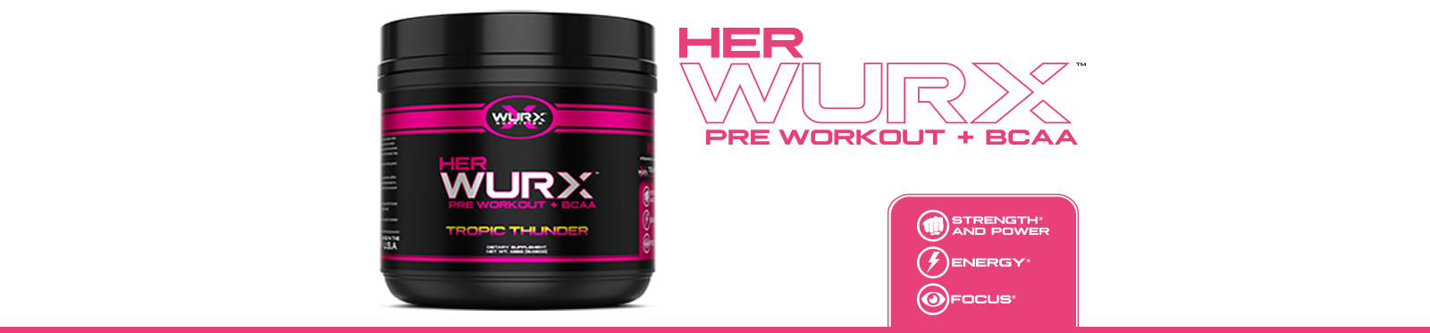 Her Wurx™ Pre-Workout was formulated specifically for the female body. Not only does Her Wurx™provide the energy and focus required for an optimal workout, but it also contains Vegan BCAAs that provide a boost during muscle fatigue and provides essential recovery benefits.